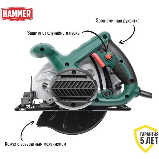Пила циркулярная HAMMER CRP1300D, 1300 Вт, 4700об/мин (арт. 324901)