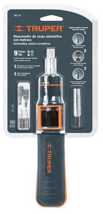 Отвертка с трещоткой и битами TRUPER DES-11X 14145 информация: