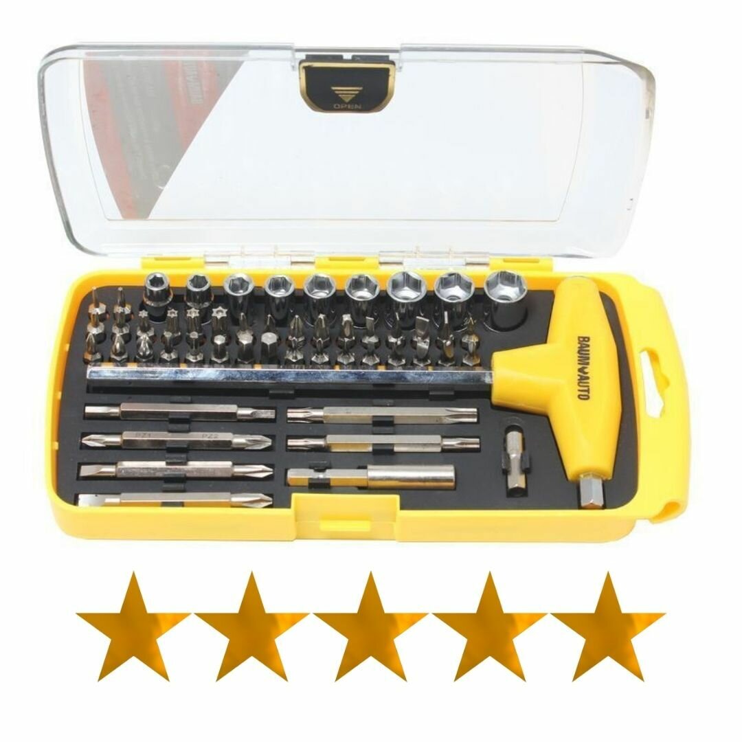 Отзывы на Отвертка реверсивная, в наборе с Т-образным держателем, комплектом бит и головок (46пр.)в пластиковом футляре.