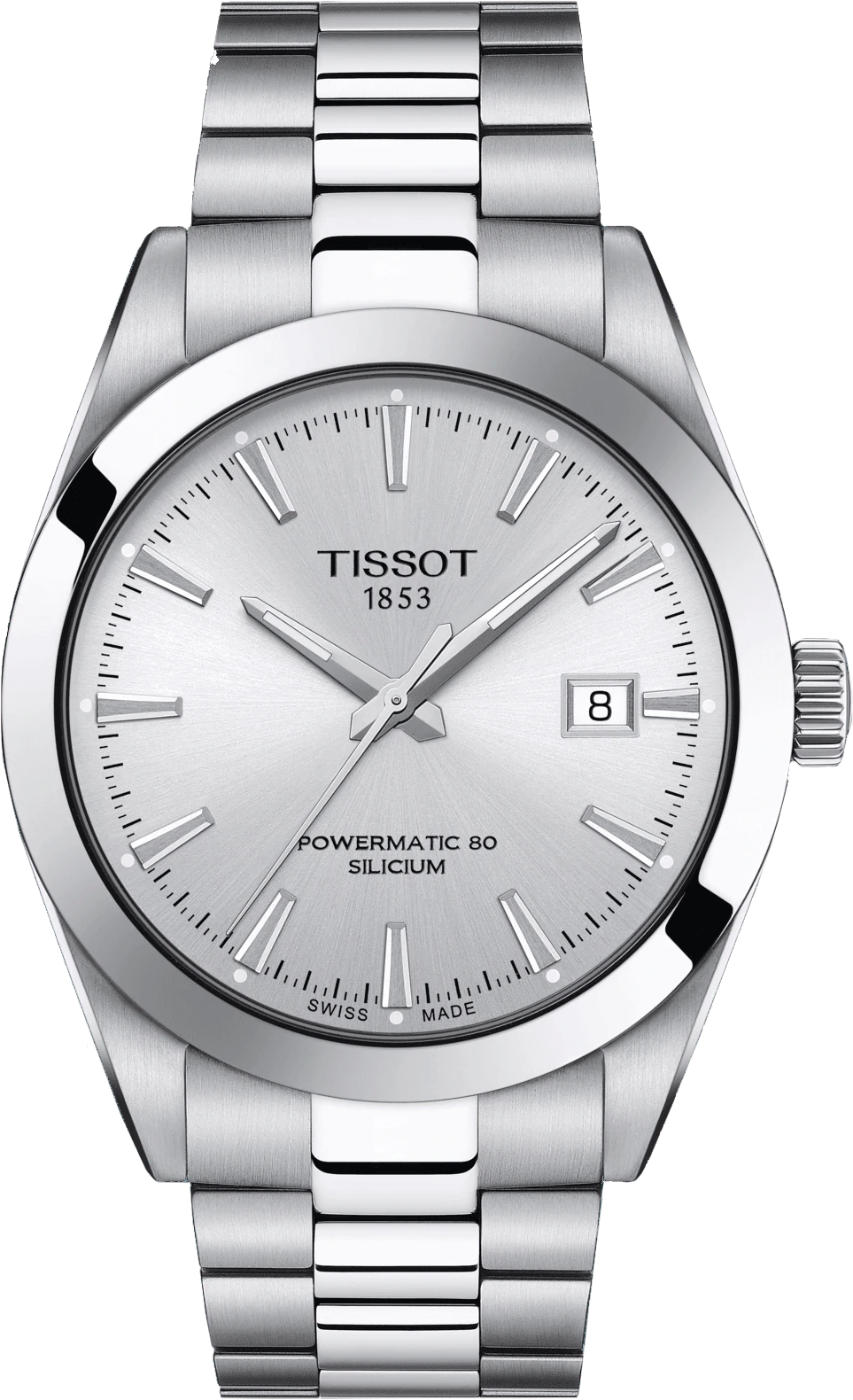 Швейцарские механические часы с автопозаводом Tissot Gentleman Powermatic 80 Silicium T127.407.11.031.00 на стальном браслете, с водозащитой 10 бар и международной гарантией от производителя