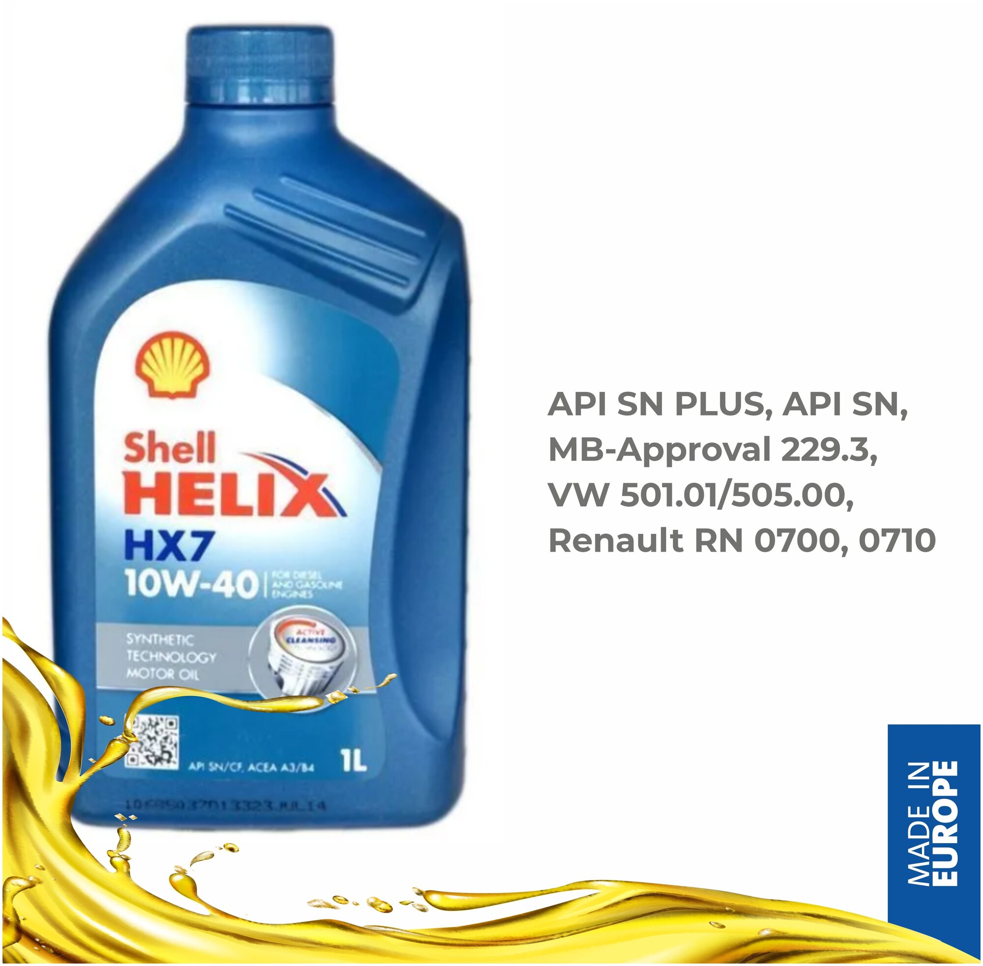 Shell Helix HX7 10W-40 1л / 100% оригинал / Сделано в Европе / Моторное масло информация: