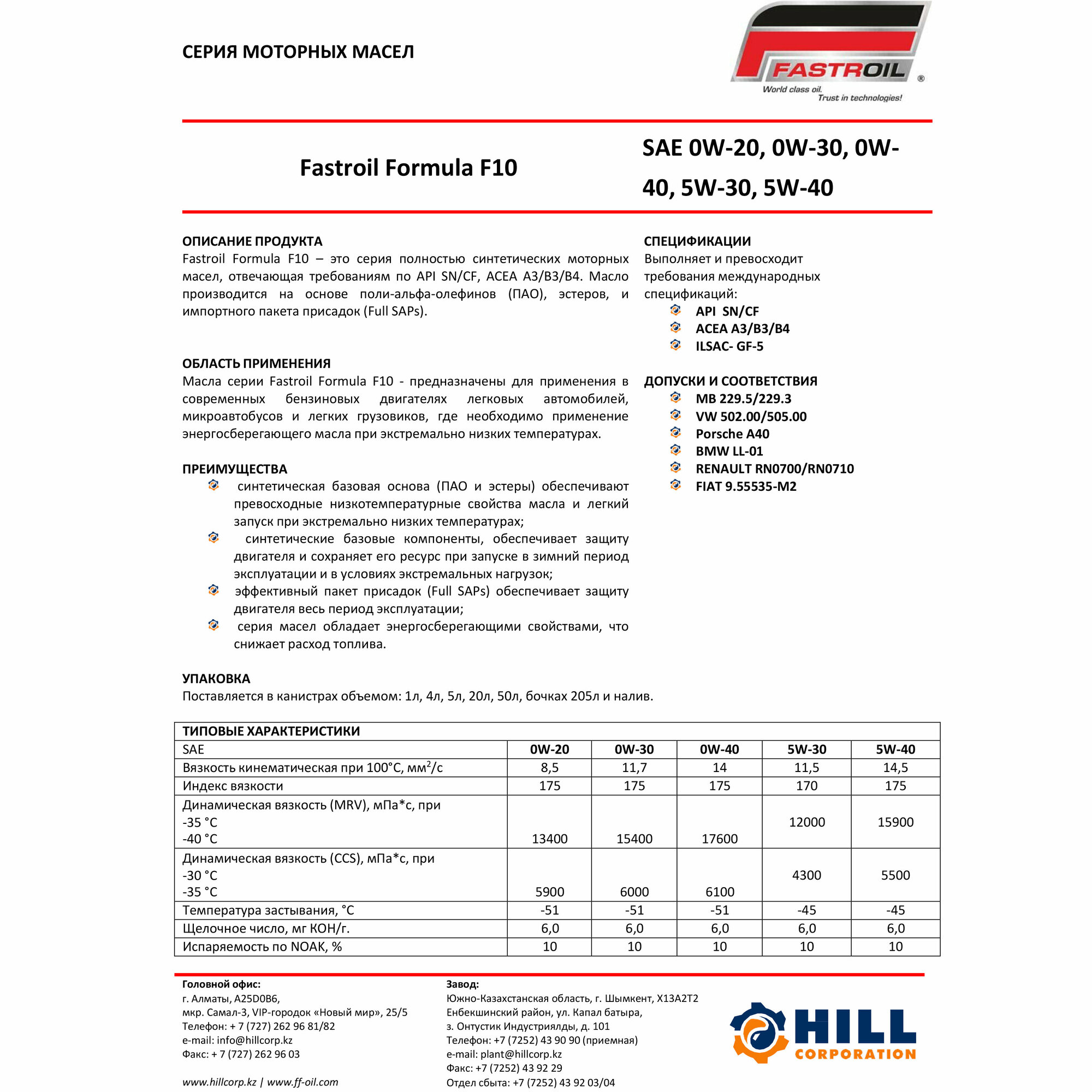 FASTROIL Масло Моторное Fastroil Formula F10 0w-30 Синтетическое 4 Л 4870200751332 информация: