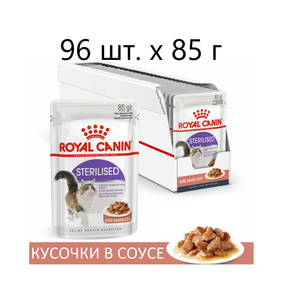 Влажный корм для стерилизованных кошек Royal Canin Sterilised, 96 шт. х 85 г (кусочки в соусе) информация: