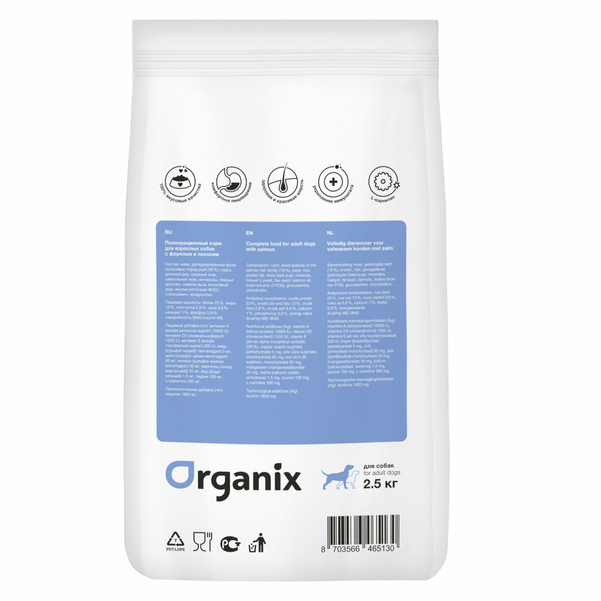 ORGANIX ADULT DOG SALMON & TROUT для взрослых собак с форелью и лососем (2,5 кг) информация: