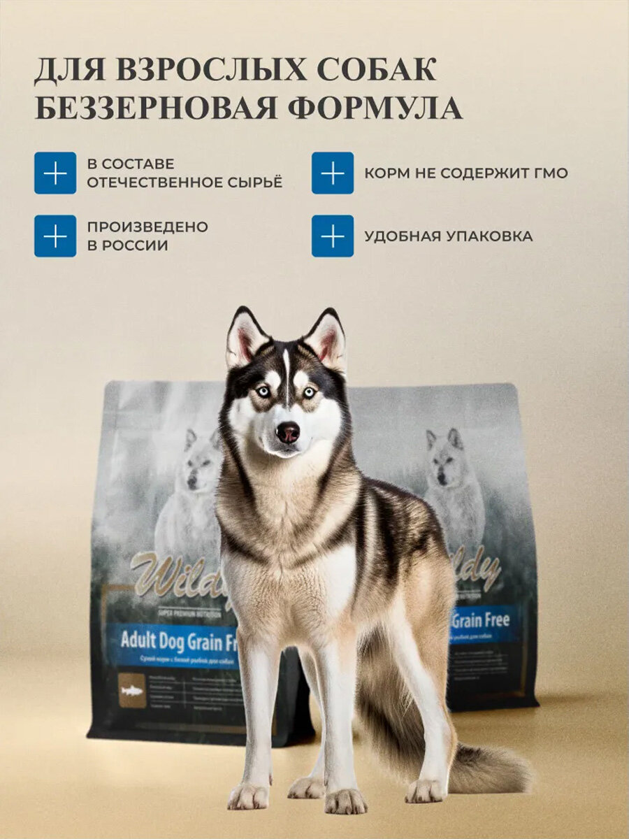10 цен на WILDY ADULT DOG GRAIN FREE беззерновой для взрослых собак с белой рыбой (15 кг)