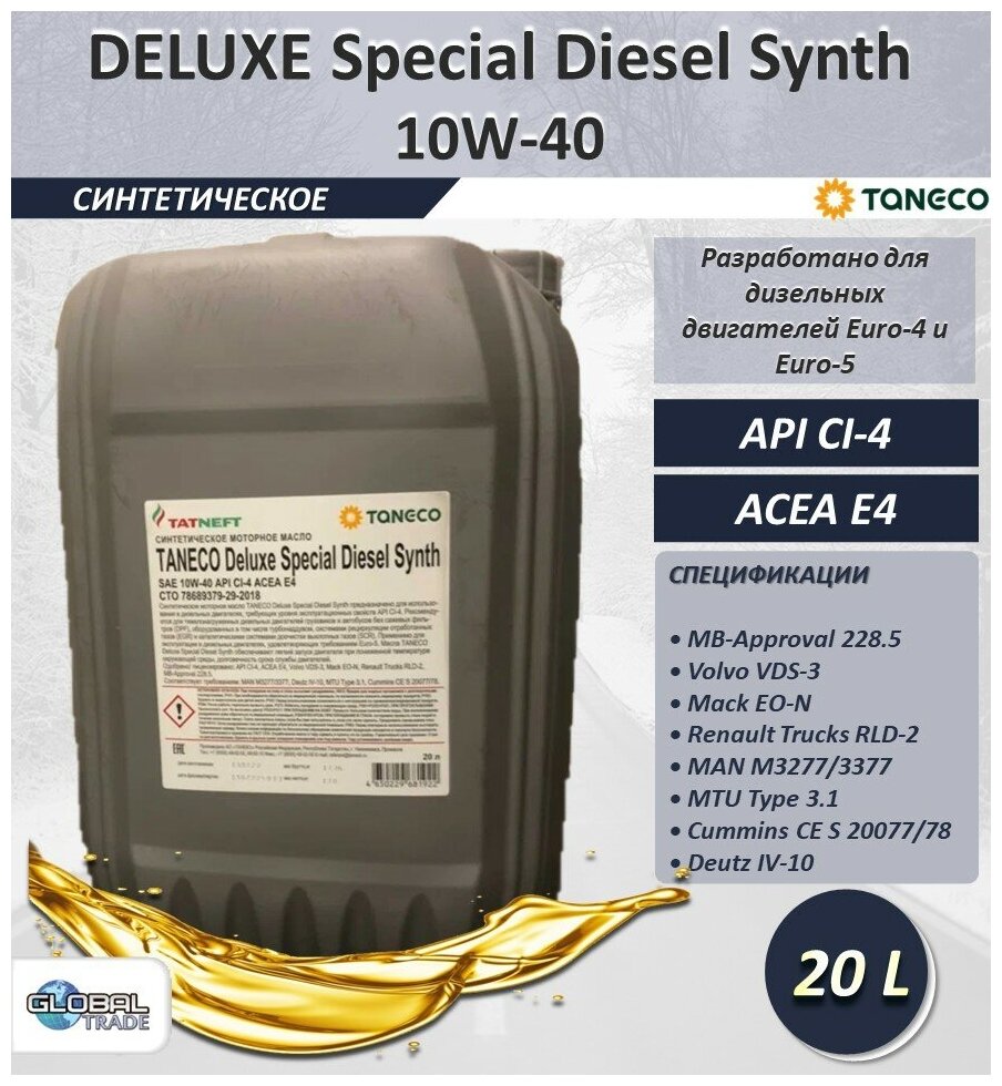 TATNEFT Масло моторное TANECO Deluxe Special Diesel Synth 10W-40 20 л информация: