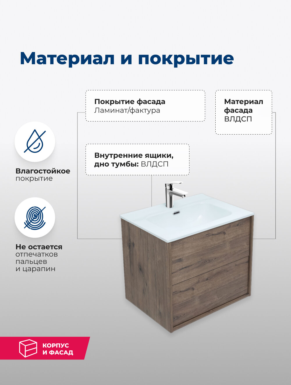 | Комплектация | Тумба Lino 60 (Flat) Дуб Веллингтон (287541), раковина в комплект не входит |