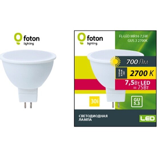 Лампа светодиодная FOTON LIGHTING FL-LED MR16 7.5W 12V GU5.3 2700K информация: