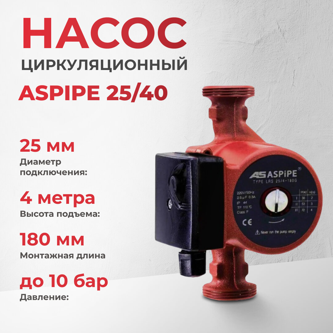 10 цен на Насос циркуляционный ASPiPE 25/40 180мм