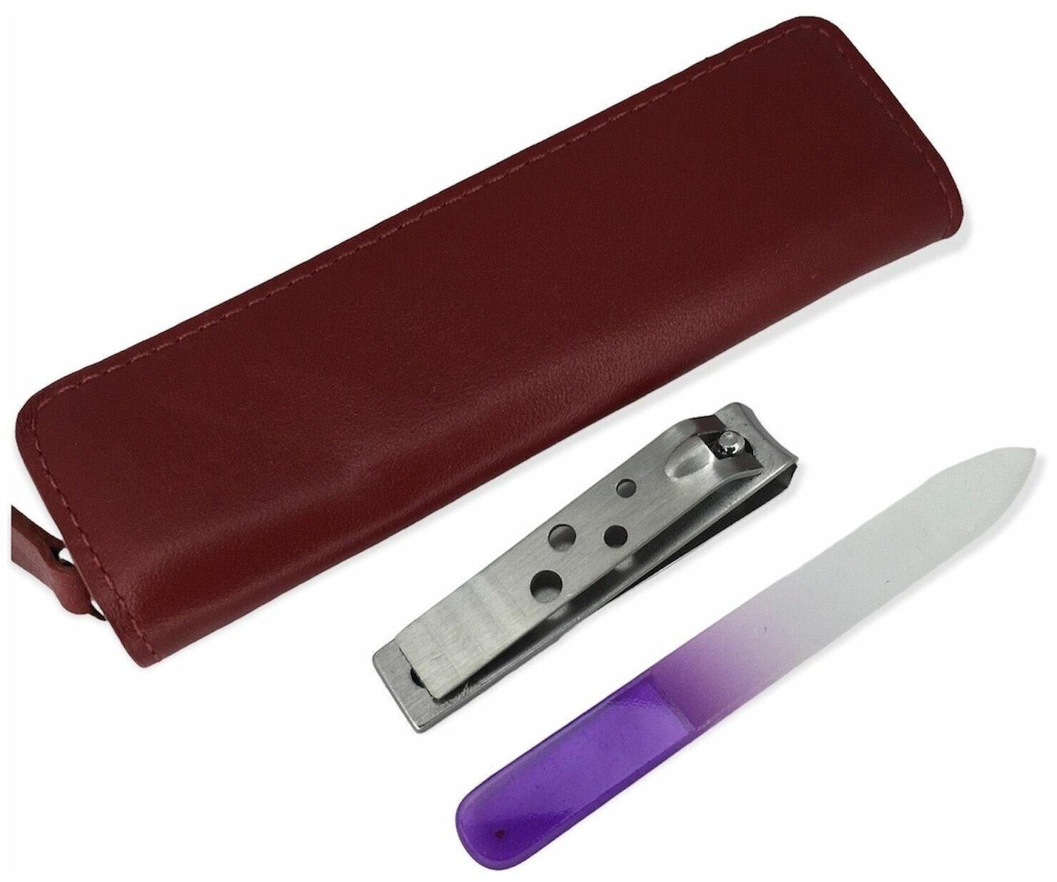 Маникюрный набор в футляре из натуральной кожи , 2 предмета, цвет красный информация: