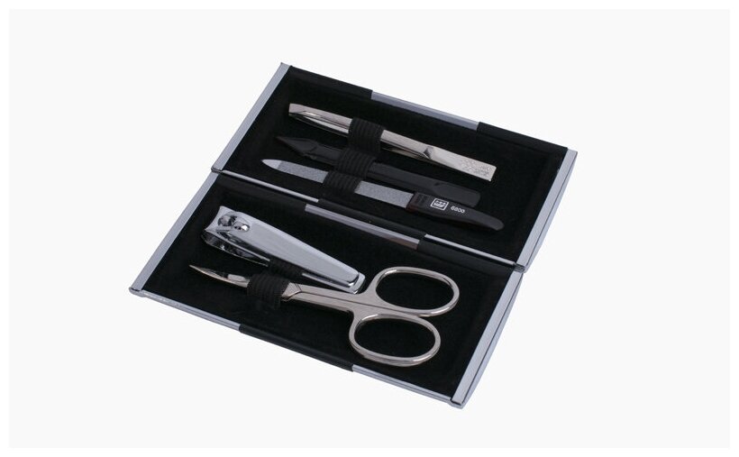 Маникюрный набор Yes, 5 предметов, серебристо-черный металлический футляр