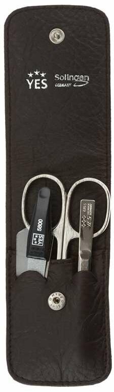 Маникюрный набор Yes, 5 предметов, серебристо-черный металлический футляр
