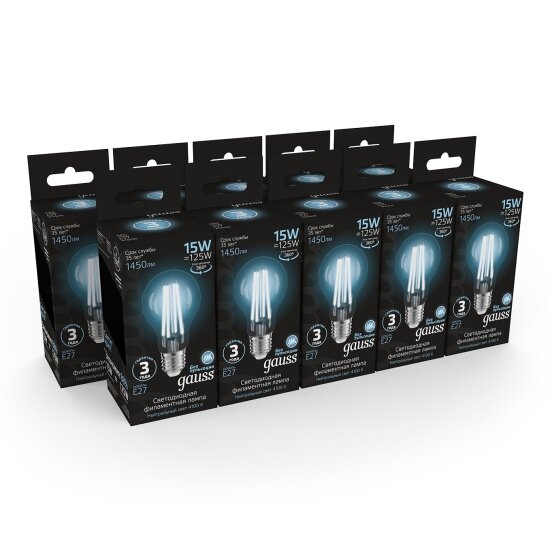 Светодиодная лампа Gauss Filament А60 15W 1450lm 4100К Е27 LED 1/10/40 информация: