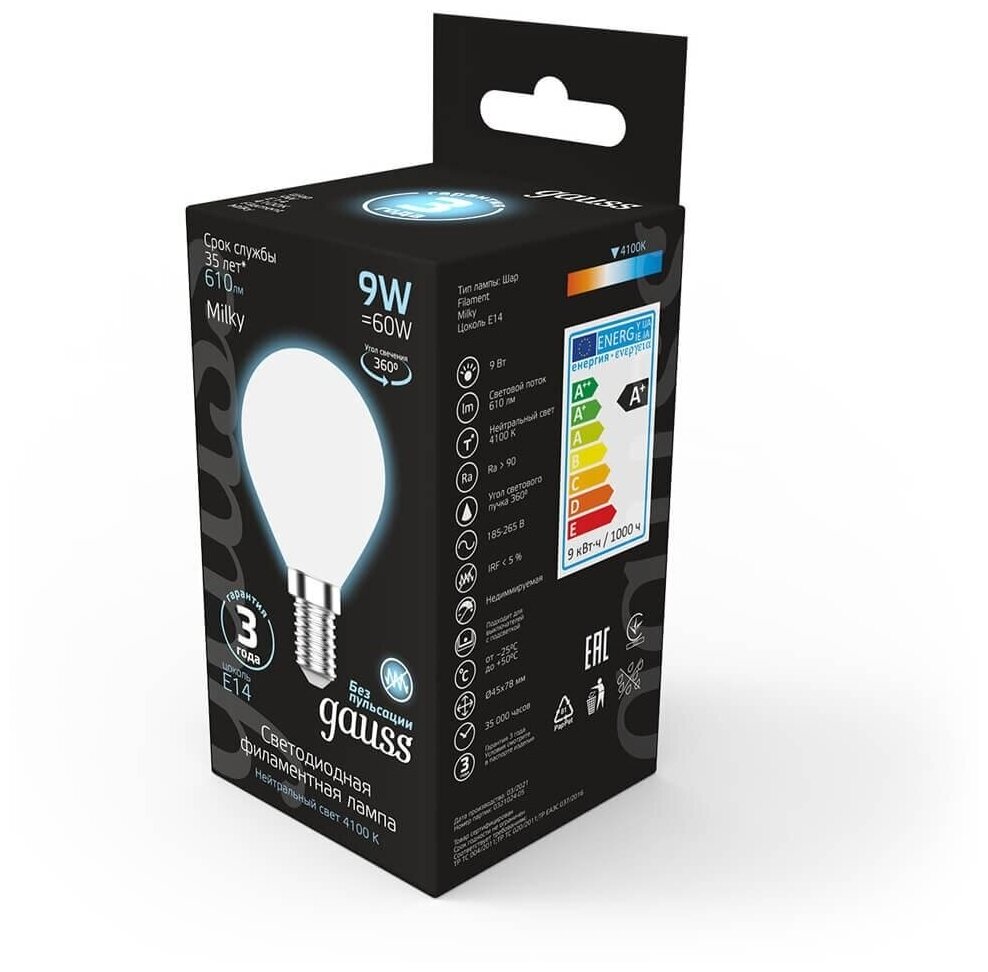 Мы выбрали 10 лучших цен на Типы/Лампочки/Филаментные Gauss Лампа светодиодная филаментная Gauss E14 9W 4100К матовая 105201209. Перед тем как купить Типы/Лампочки/Филаментные Gauss Лампа светодиодная филаментная Gauss E14 9W 4100К матовая 105201209 посмотрите найденные предложения из Яндекс Маркета и других сайтов на основе XML фидов.