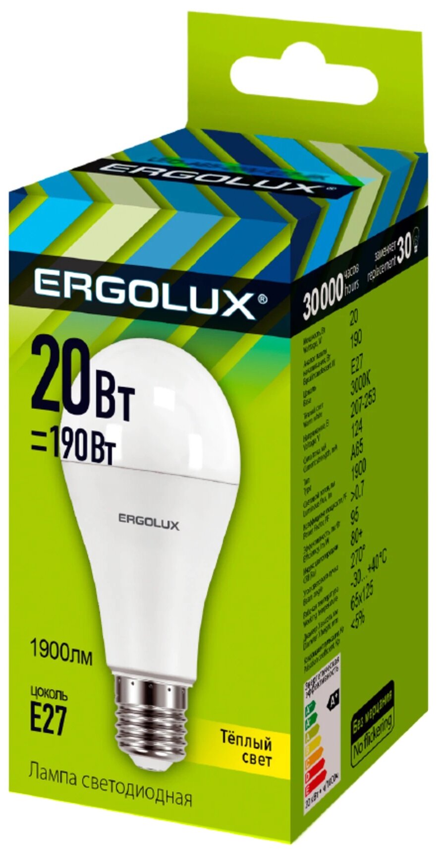 Комплект светодиодных лампочек ERGOLUX LED-A65-20W-E27/-3K 10шт информация:
