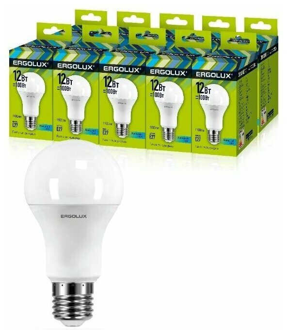 10 цен на Светодиодная Лампа Ergolux LED-A60-12W-E27-4K упаковка 10 шт