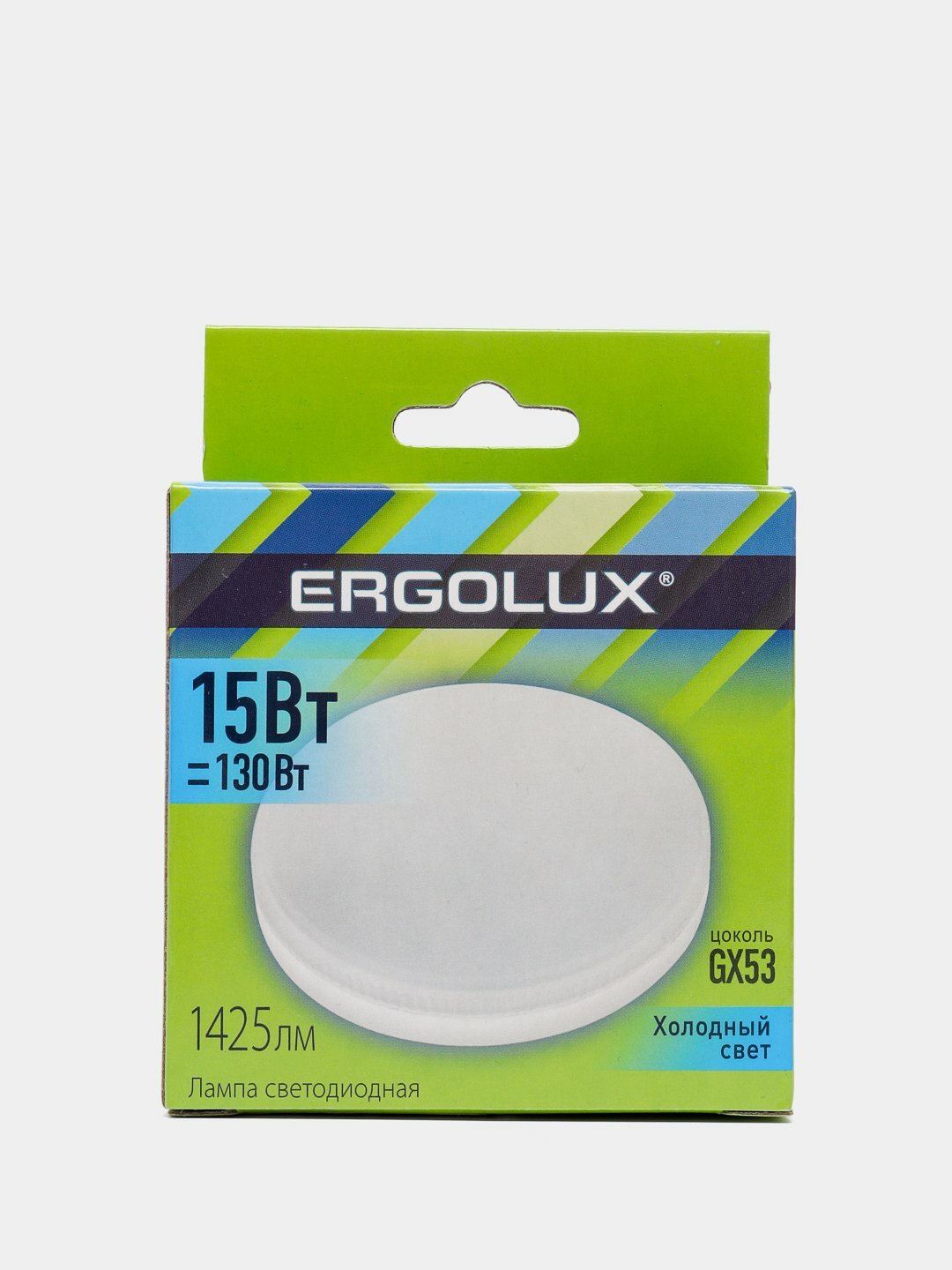 Лампа светодиодная GX53 Ergolux Таблетка, 15Вт, 4500К, лампочка 1 шт. 14239