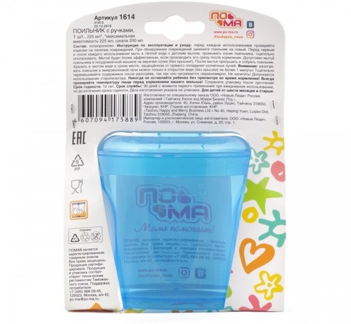 Поильник с ручками пома 225 мл, голубой 6+ мес информация: