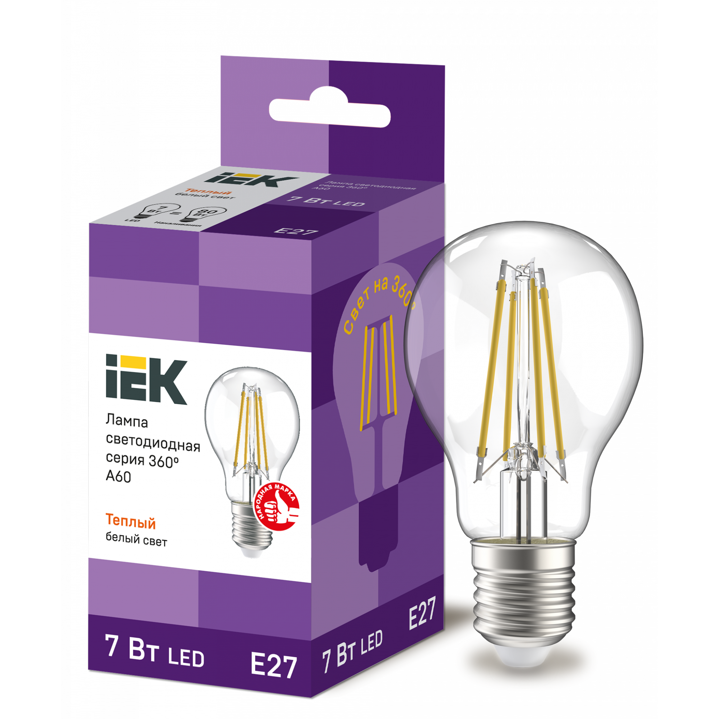Отзывы на Лампа светодиодная A60 шар прозр. 7Вт 230В 3000К E27 серия 360° IEK LLF-A60-7-230-30-E27-CL (10 шт.)
