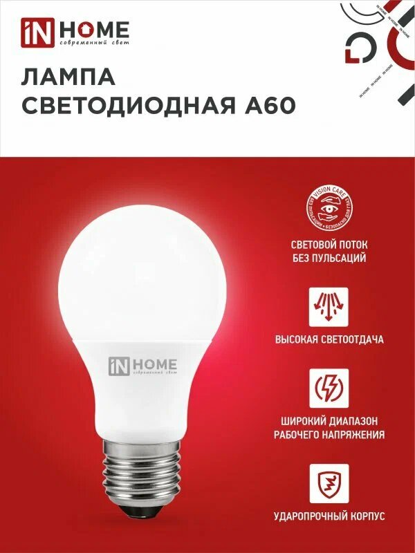 Лампа светодиодная IN HOME LED-A60-VC, E27, A60, 15 Вт, 3000 К