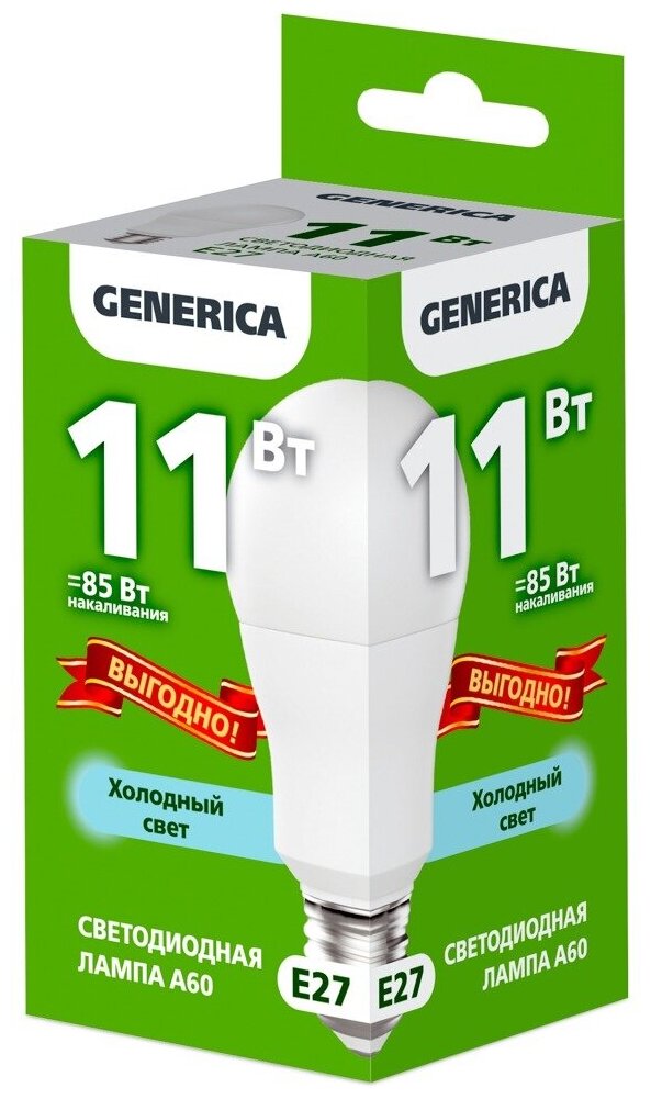Лампа светодиод 11Вт груша А60 Е27 6500К матовая промо GENERICA IEK (10/100) информация: