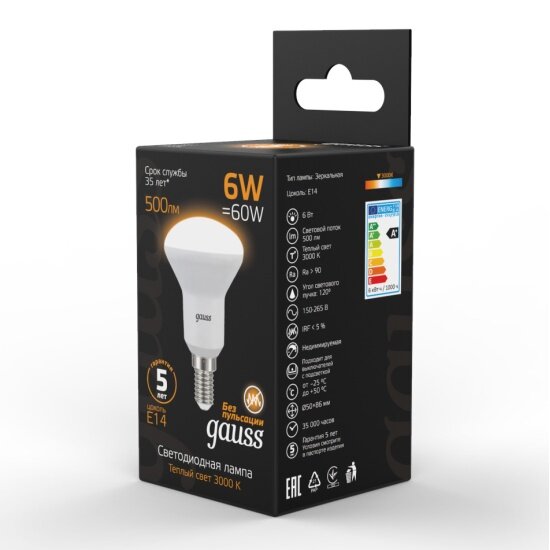 Светодиодная лампа Gauss LED R50 E14 6W 3000K (упаковка 10 шт) информация: