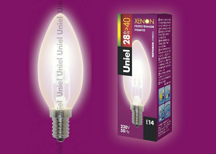 Лампа галогенная Uniel 3200K 01081, E14, C35, 28Вт, 3200 К информация: