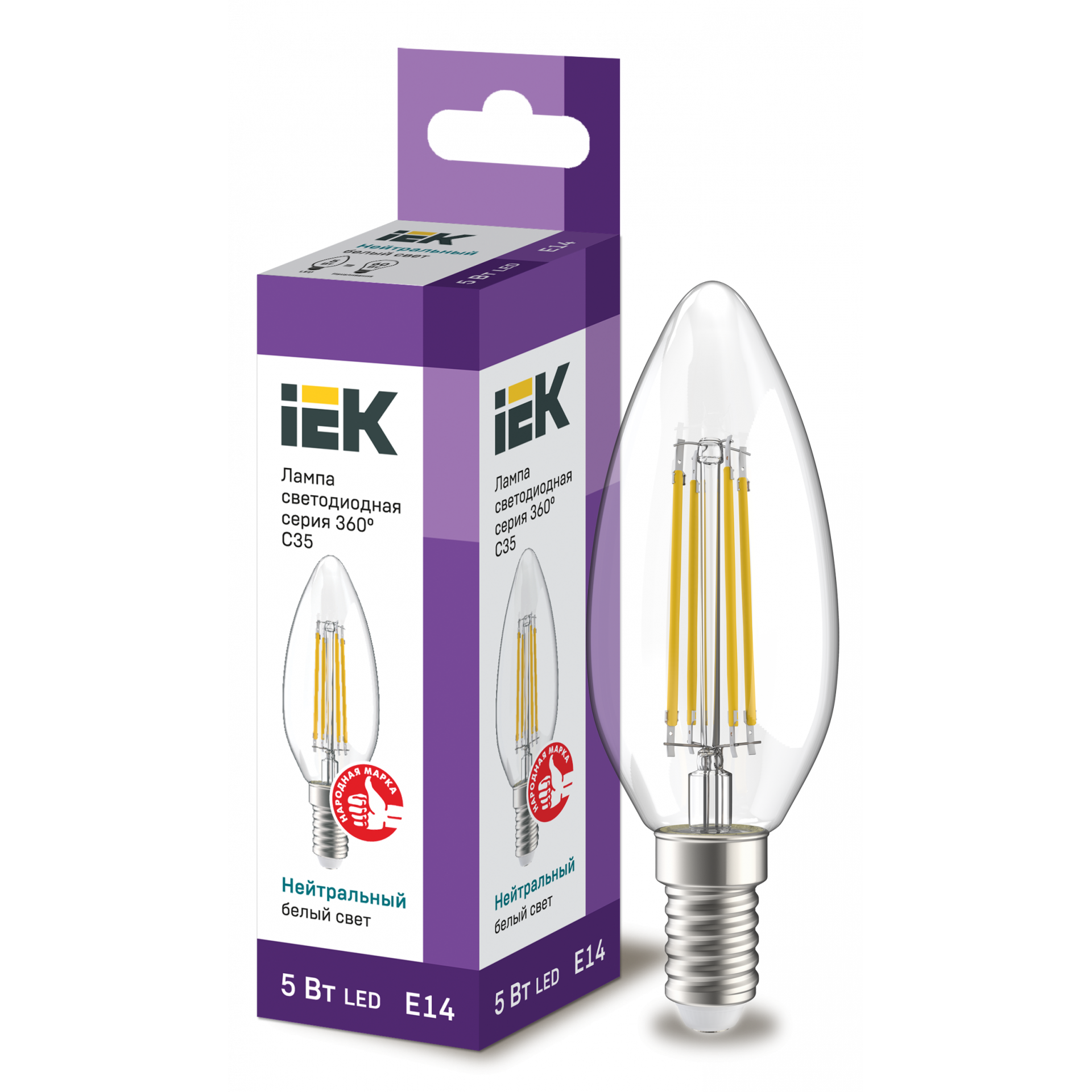 Отзывы на Лампа светодиодная C35 свеча прозр. 5Вт 230В 4000К E14 серия 360° IEK LLF-C35-5-230-40-E14-CL (10 шт.)