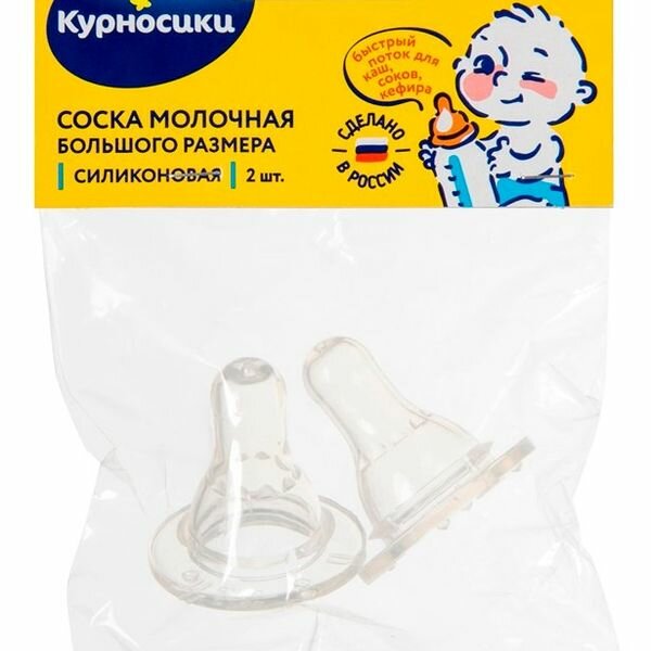 Курносики Соска молочная силиконовая большого размера, быстрая скорость потока , 6+, 2 шт.
