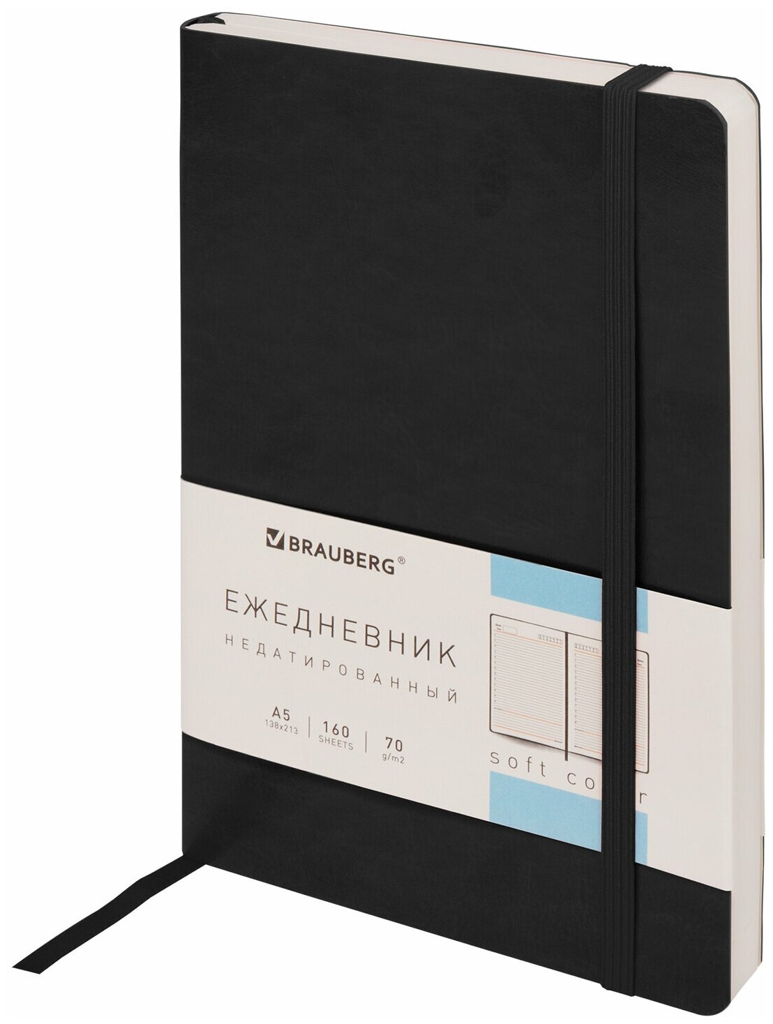 Ежедневник недатированный с резинкой А5 138х213мм под кожу черный BRAUBERG Metropolis, 113288