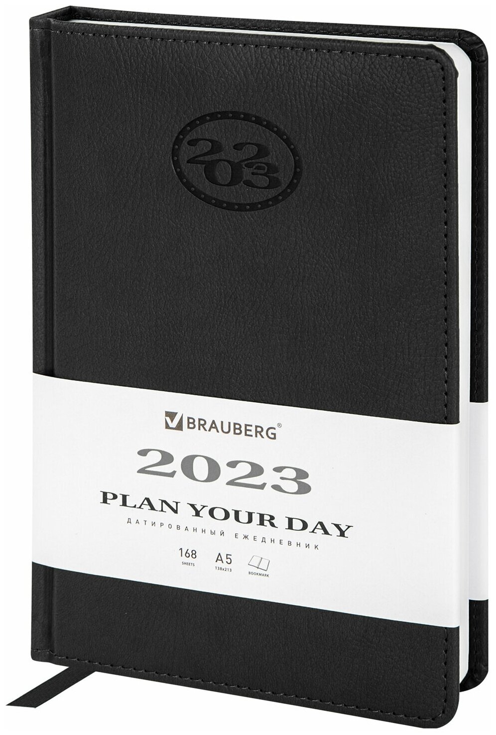 Ежедневник датированный 2023 А5 138x213 мм BRAUBERG "Favorite", под кожу, черный, 114006 114006