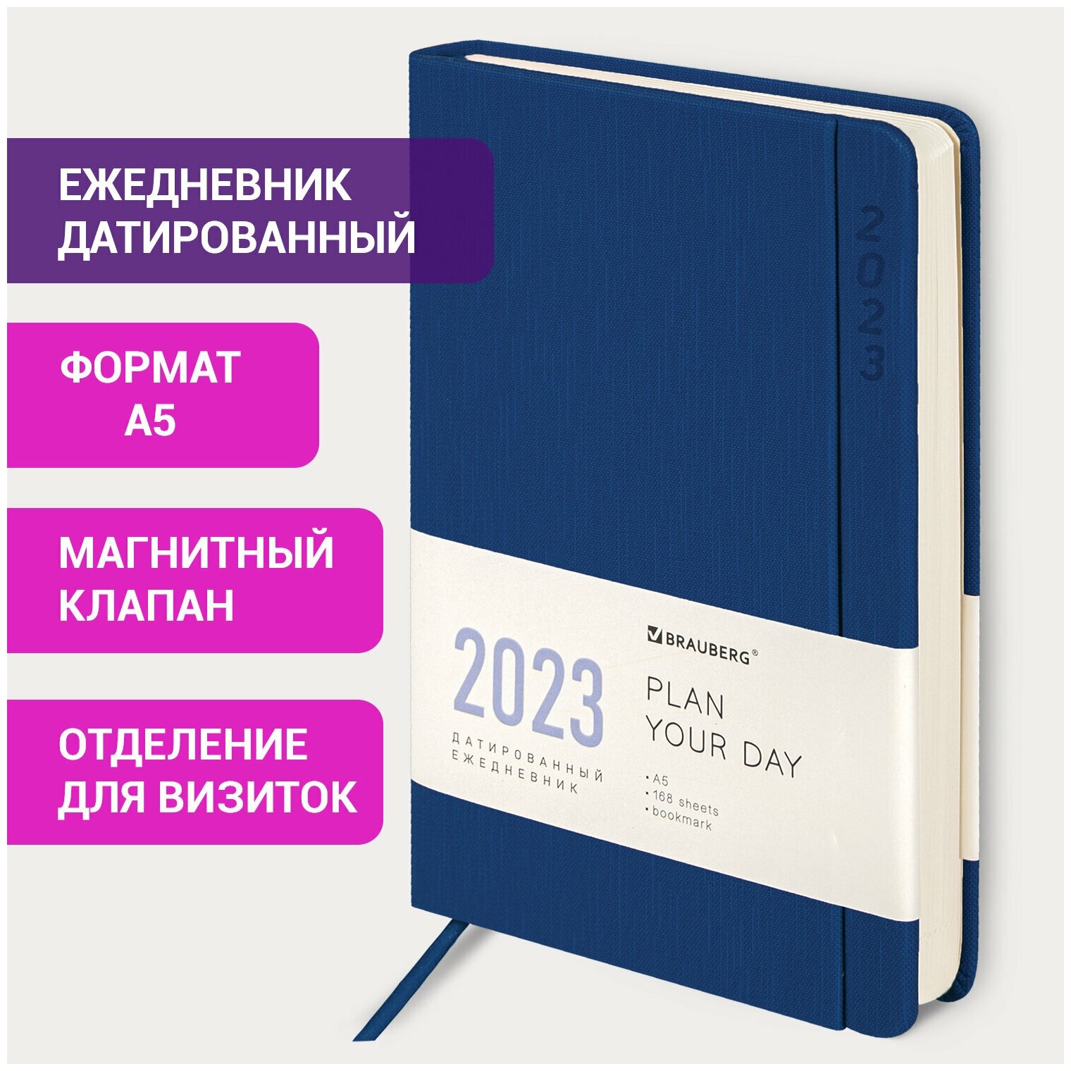 Ежедневник датированный 2023 А5 138x213 мм BRAUBERG "Flap", синий, 114148 информация: