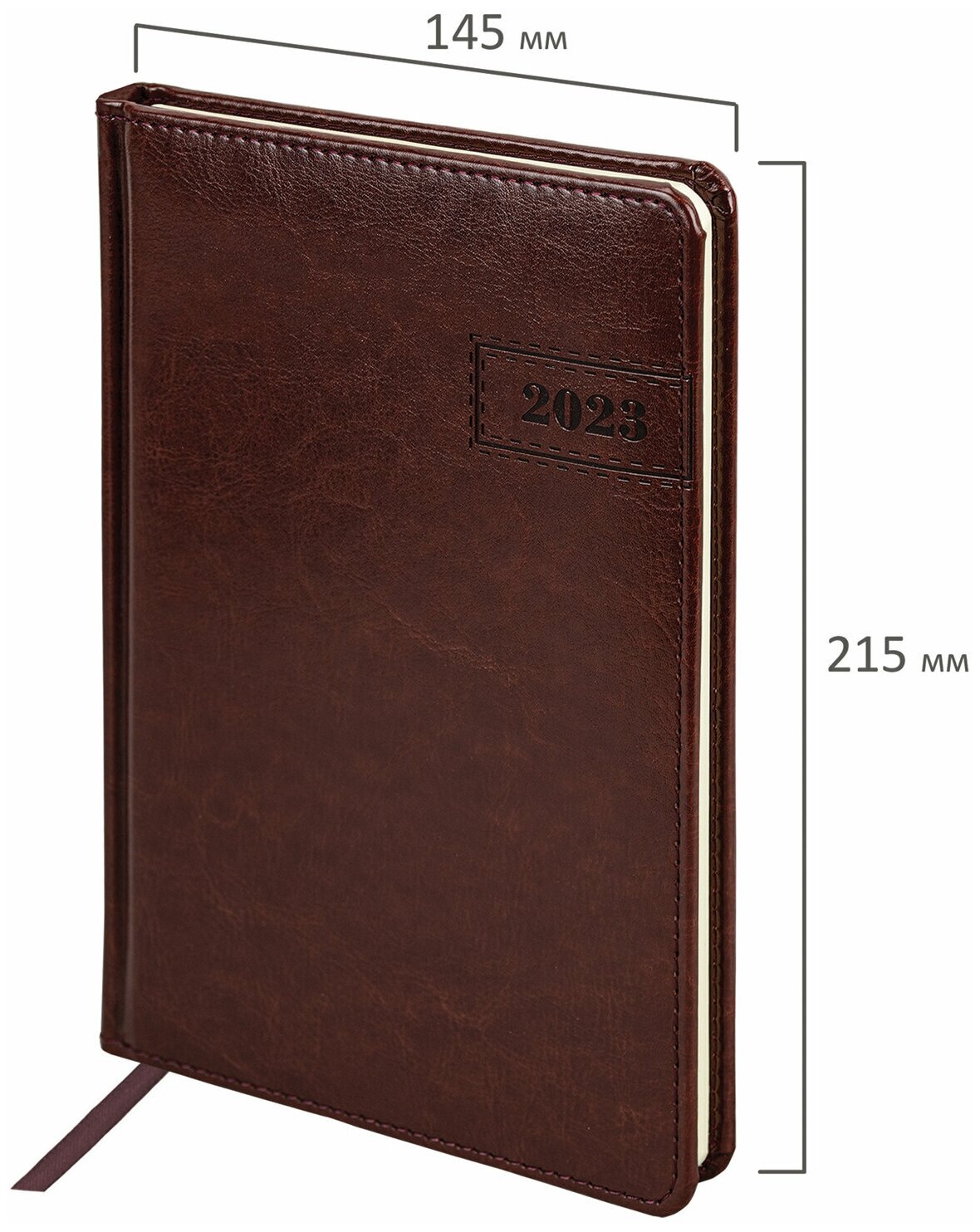 Еженедельник датированный 2023, А5, 64л., кожзам, Brauberg "Imperial", ляссе, коричневый информация: