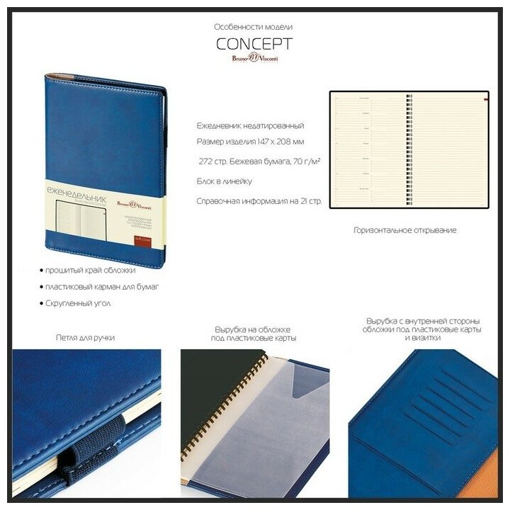10 цен на BrunoVisconti Еженедельник недатированный А5, 64 листа на гребне CONCEPT, обложка искусственная кожа, оранжевый
