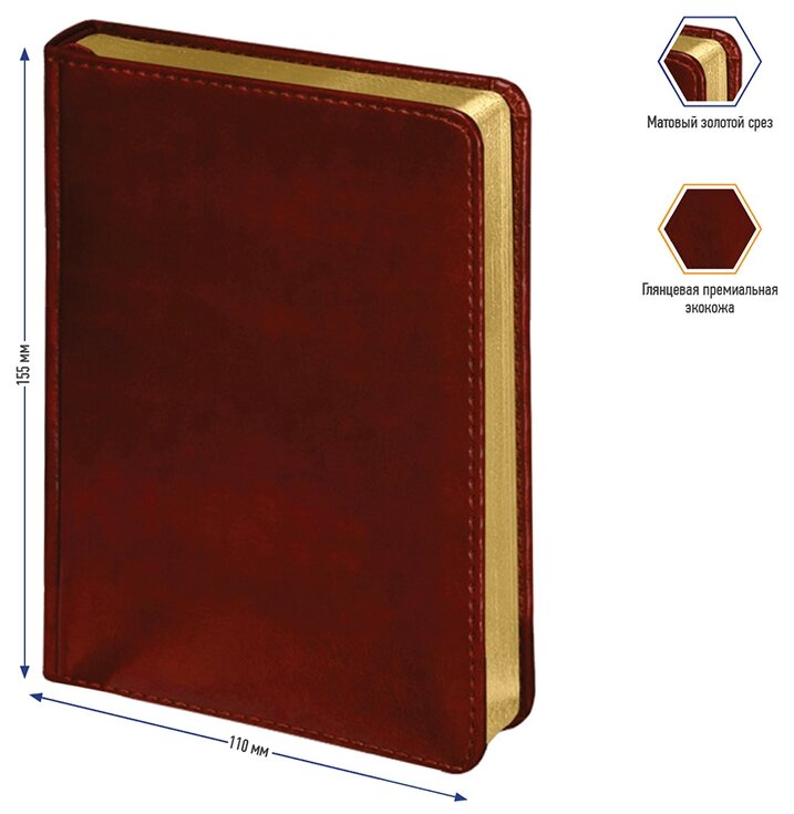 Berlingo xGold недатированный, искусственная кожа, А6+, 160 листов, бордовый, цвет бумаги тонированный