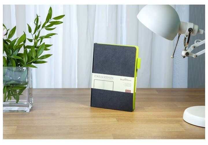 Ежедневник недатированный А5 Bruno Visconti Boston, черный (обрез зеленое яблоко)