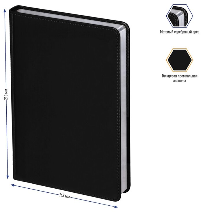 Ежедневник недатированный А5, 160 листов, Berlingo "Silver Pristine". Блокнот/ планер/ записная книжка в линейку, под кожу, серебряный срез, черный, в подарок 468 ₽