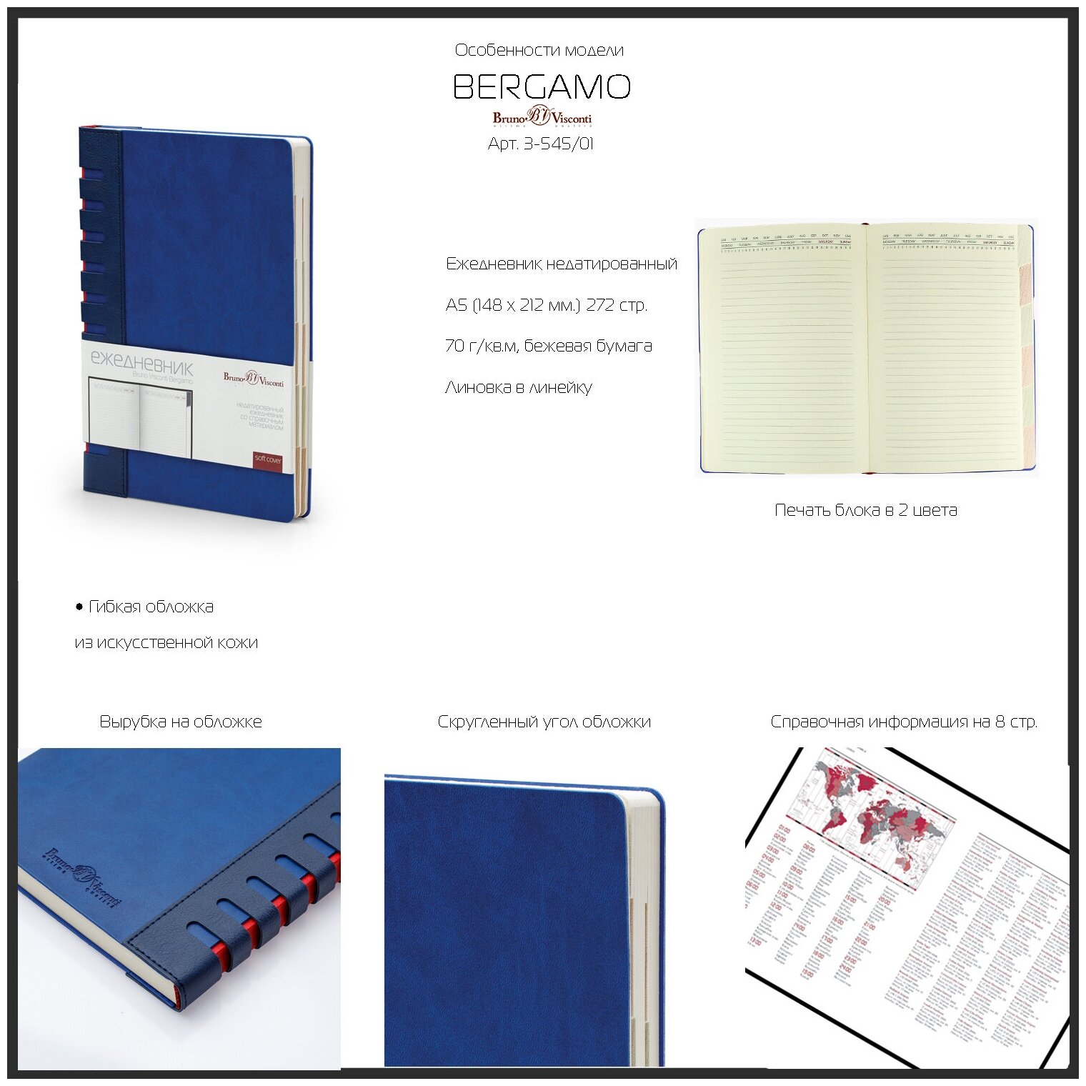 10 цен на Ежедневник BrunoVisconti недатированный, А5 (148 х 212 мм.), "BERGAMO" синий 272 стр., Арт. 3-545/03