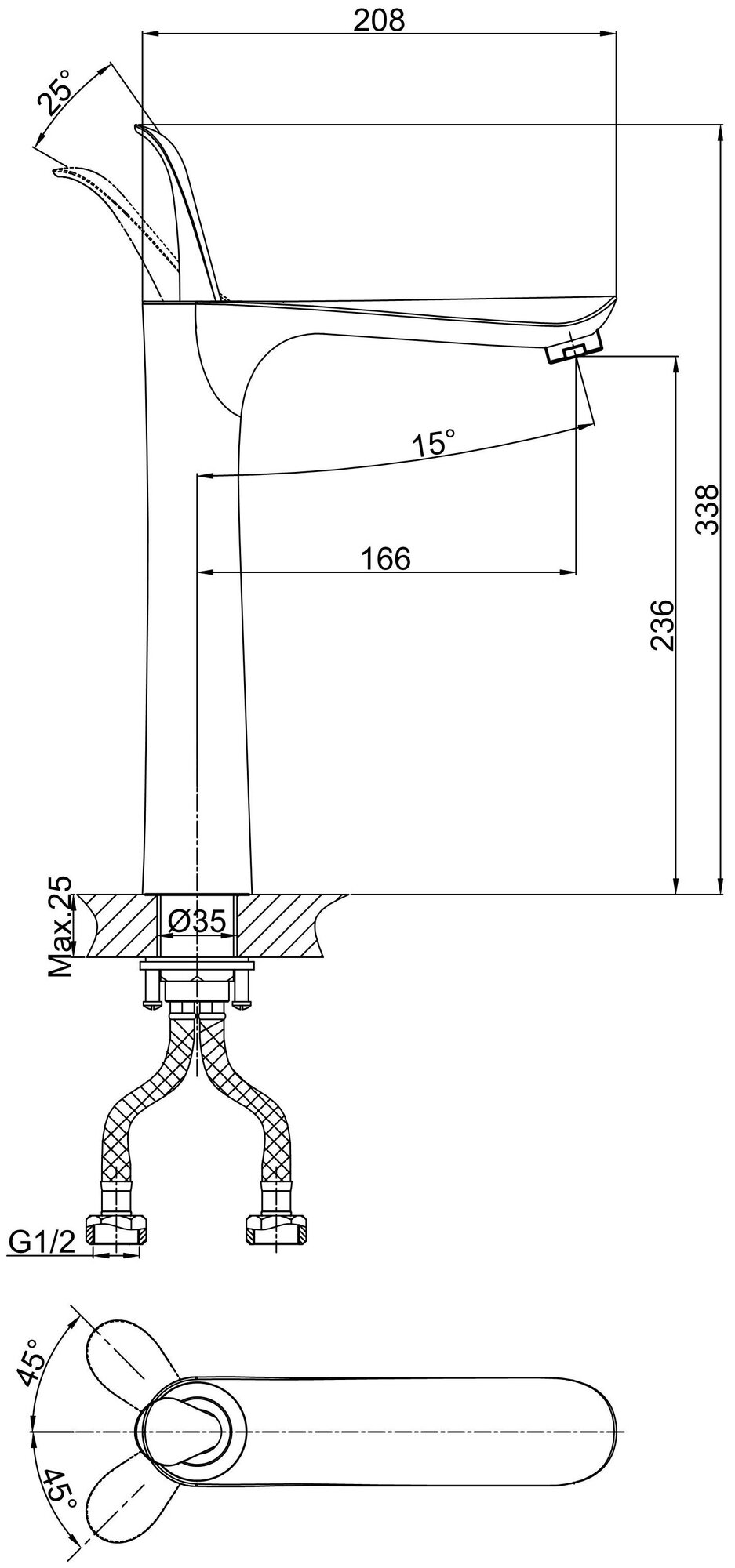 | Угол поворота рукоятки вертик. | 25 градусов |