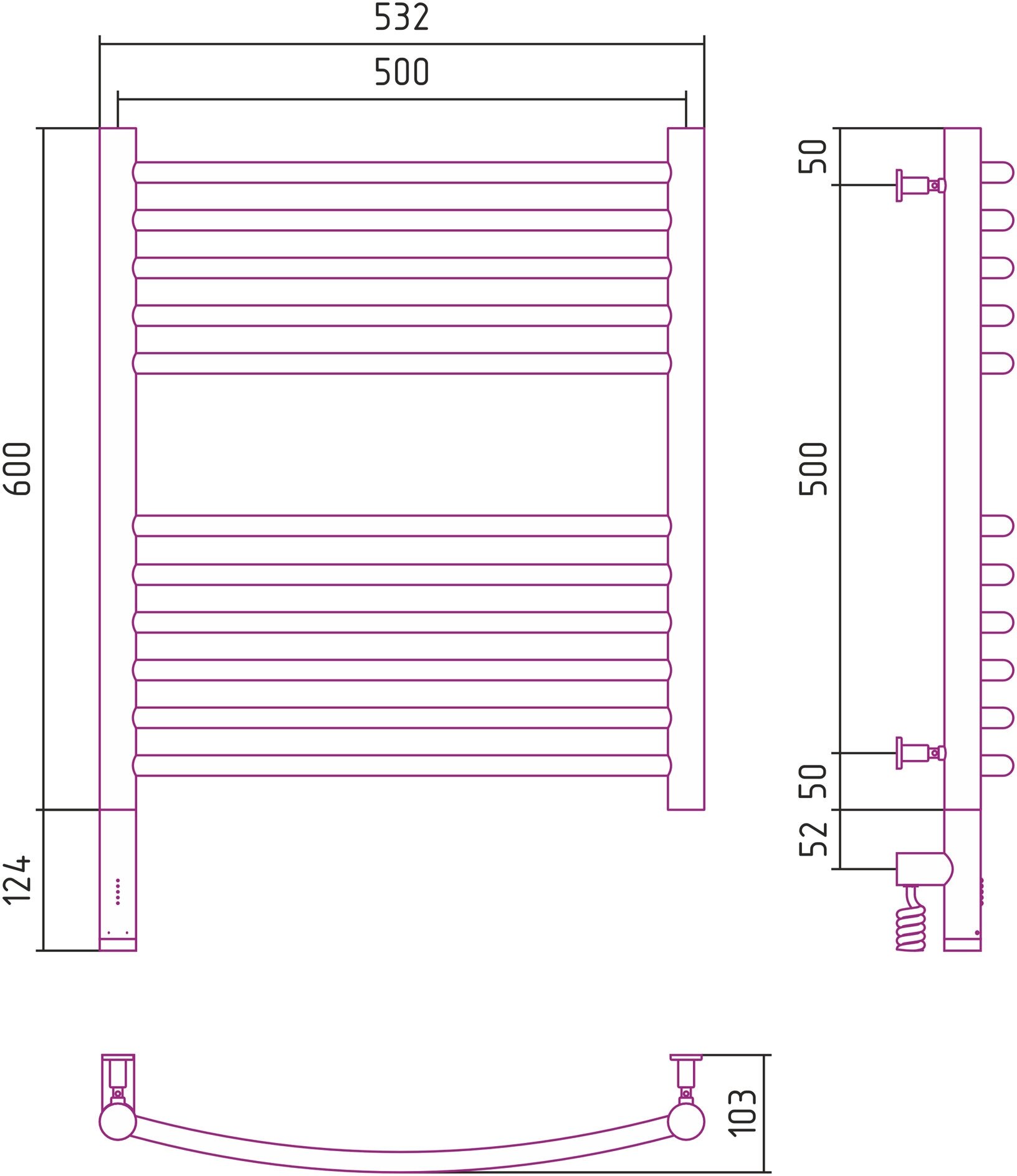 Электрический полотенцесушитель Сунержа Богема 3.0 выгнутая 600x500 лтэн без пoкрытия