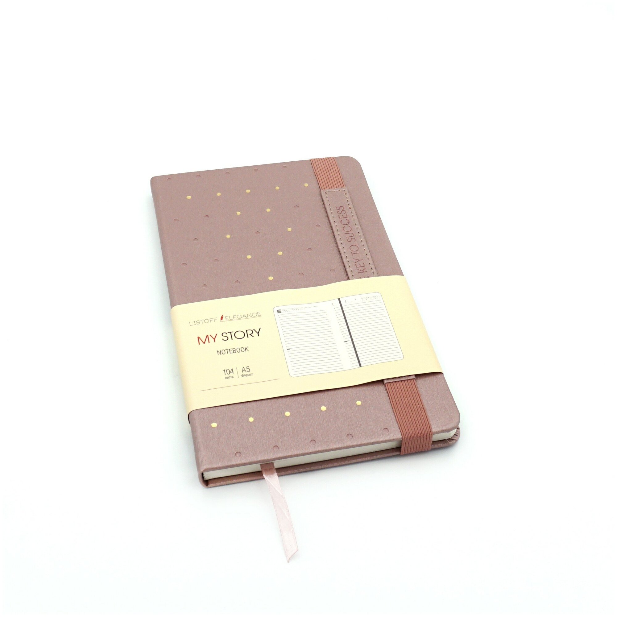 MY STORY. Шампанское Ежедневники А5. Недатир. 104л. Иск.кожа 7Б (MY STORY) с термотисн. и тисн.золото.Скругл.углы.Бум.тонир. оф 80г/м2.1кр.Ляссе. Шир. резинка с терм. тисн информация: