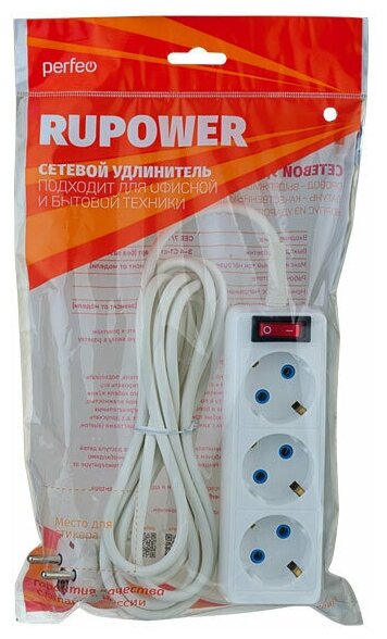 Отзывы на Сетевые удлинители Perfeo Сетевой удлинитель Perfeo с кнопкой "RU POWER",5,0м, 3 розетки, белый (Р16-012)