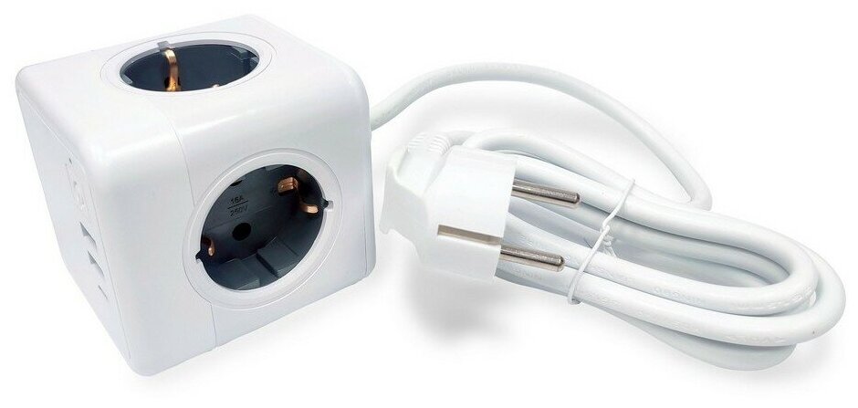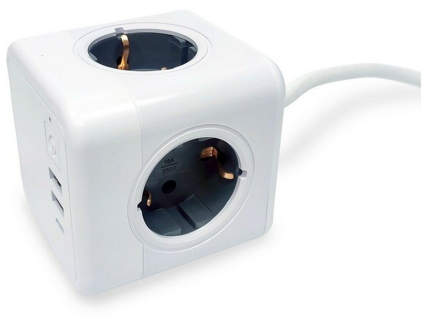 Отзывы на Удлинитель Cube Extended 4 Euro 16A, 3 USB 2A+C с блоком 5В/3.0А, кабель 1,5м RocketSocket, цвет серый GNS1405
