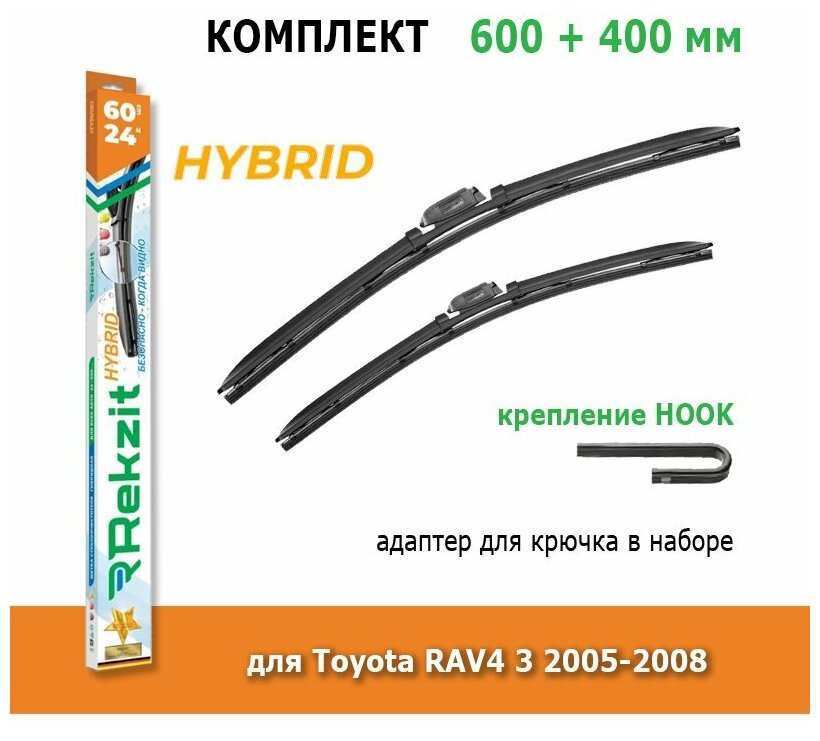 Гибридные дворники Rekzit Hybrid 600 мм + 400 мм Hook для Toyota RAV4 3 2005-2008 информация: