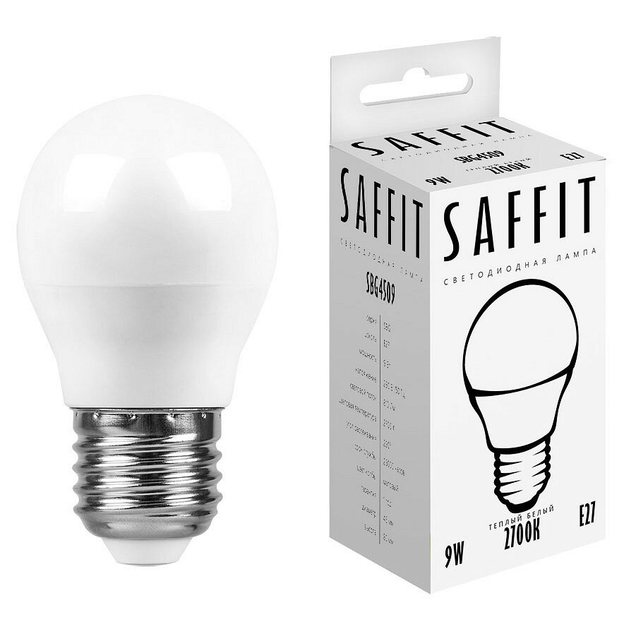 Лампа светодиодная SAFFIT SBG4509 Шарик E27 9W 2700K, 55082 информация: