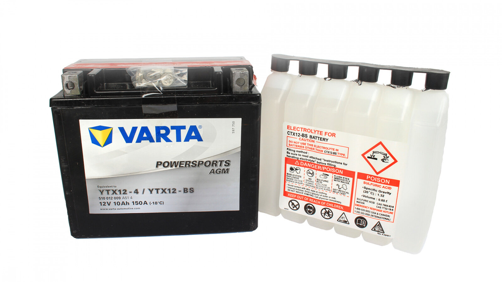 Аккумулятор для мотоцикла и скутера VARTA POWERSPORTS AGM 10 А/ч 150 А прям. пол. с/зар. с эл. YTX12-4, YTX12-BS (152х88х131) 510012 6 540 ₽