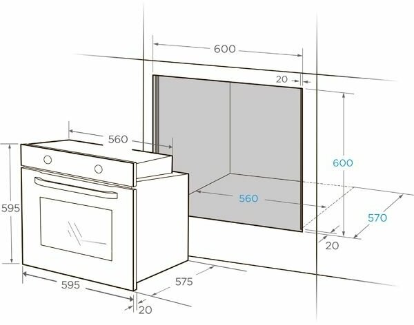 Духовой шкаф встраиваемый LEX EDM 077 C IV, 60 см, с конвекцией, механические ручки, объем 60 л, аналоговый таймер, телескопические направляющие.