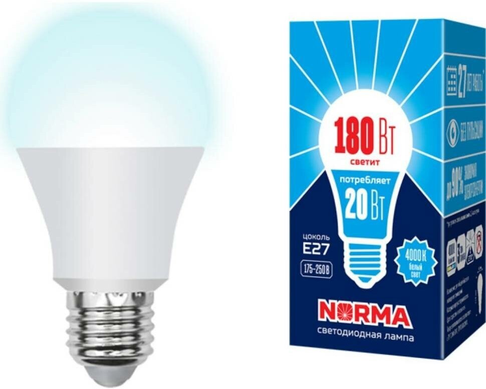 10 цен на Лампа светодиодная E27 20W 4000K матовая LED-A65-20W/NW/E27/FR/NR UL-00004029