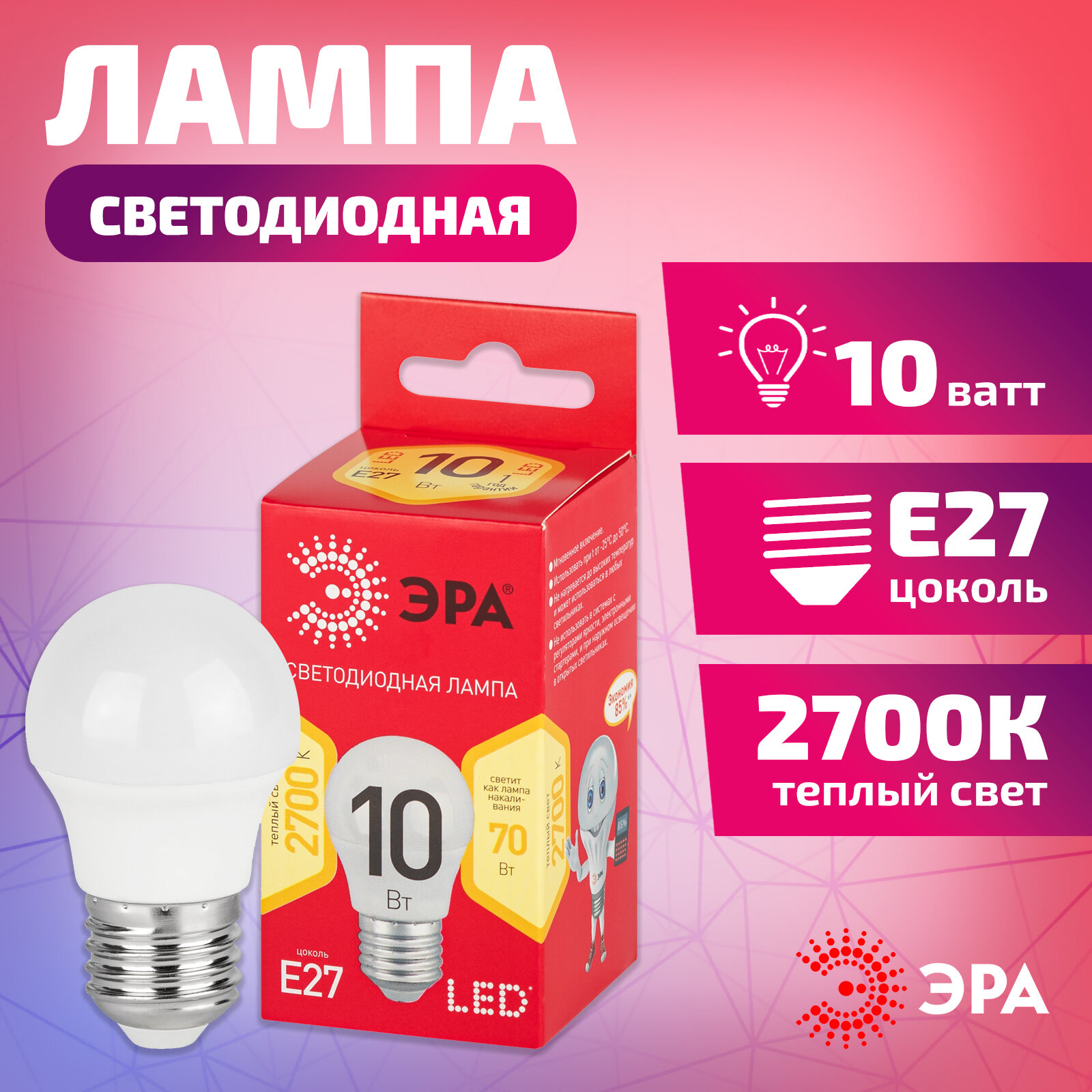 Лампочка светодиодная ЭРА RED LINE LED P45-10W-827-E27 R Е27 10 Вт шар теплый белый свет арт. Б0050698 (1 шт.)