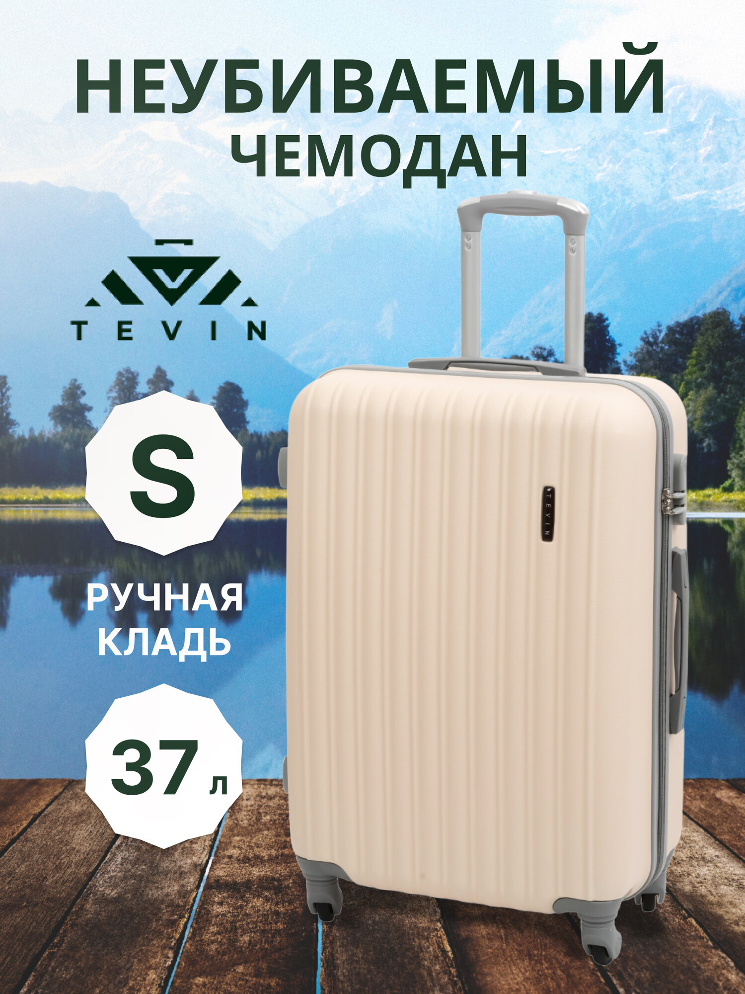 Отзывы на Чемодан на колесах дорожный ручная кладь в самолет s TEVIN размер С маленький 55 см ручной 37 л cabin 21" легкий 2.5 кг прочный abs пластик бежевый